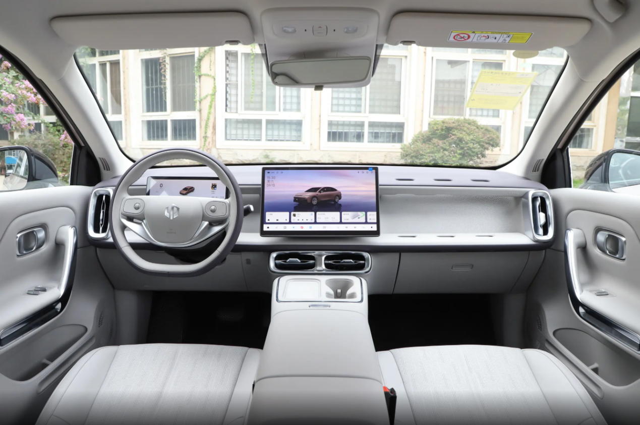 小鹏MONA M03内饰偏向年轻、简约,方向盘以及门板扶手等区域采用了皮质软包,中控台、门板下方则为硬塑料材质,对内饰质感要求不高的朋友来说,MONA M03可满足基本需求。
