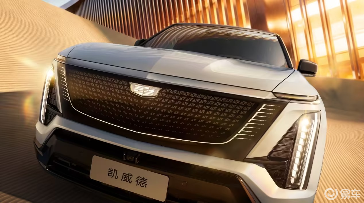 外观部分,凯威德延续了凯迪拉克电动车的家族设计。前脸使用封闭式黑晶格栅,两侧搭配纵向灯组,再加上贯穿式镀铬装饰,整体还是比较典型的凯迪拉克风格。