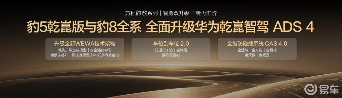 智能驾驶层面,豹5乾崑版及豹8全系升级华为乾崑智驾ADS 4,实现从“类人驾驶”到“超人驾驶”的跨越。新升级的WEWA技术架构支持辅助驾驶云端自主学习,能根据用户习惯持续优化体验;“车位到车位2.0”功能打通行车与泊车全流程,无需手动切换操作;全维防碰撞系统CAS 4.0则覆盖全路况、全天候场景,制动响应速度与安全性显著提升,既缓解长途越野疲劳,也强化城市通勤安全性。